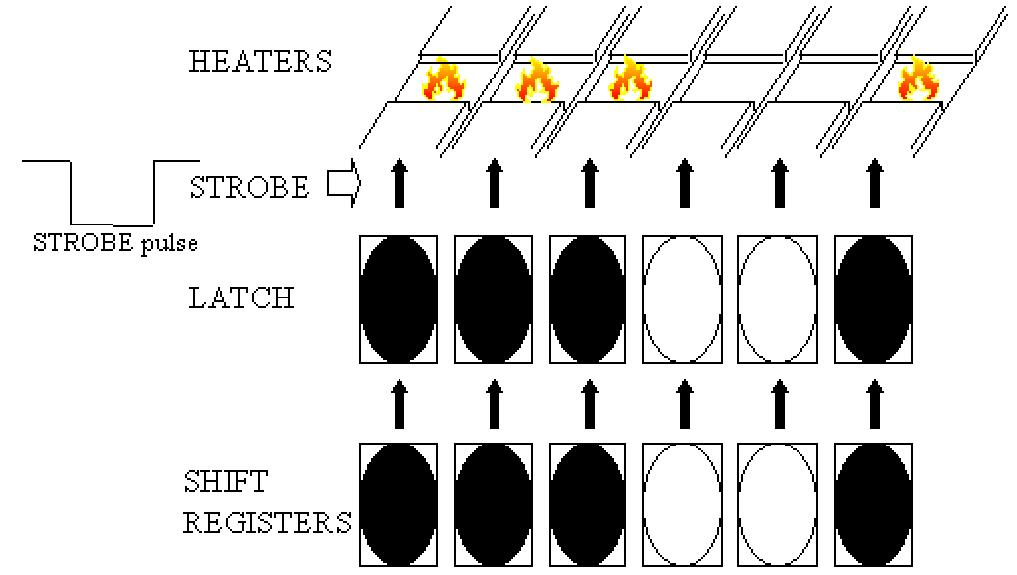 • 各条线单独地发送到打印头,并且由打印头在图像线的各个小点的相应位置产生点状热能。